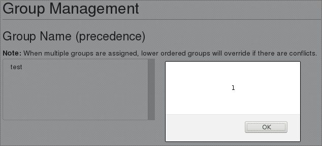 When a value like test<script>alert(1)</script> is used for New Group: