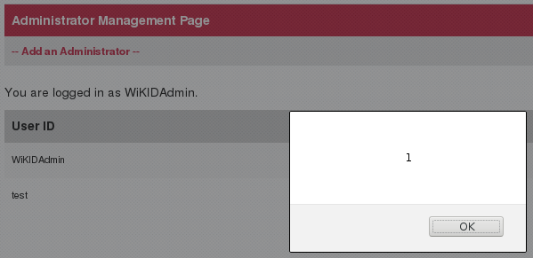 A stored and reflected cross-site scripting vulnerability, CVE-2019-17120, was identified on WiKID Systems 2FA Enterprise Server version 4.2.0-b2047 and earlier. The usr parameter, used by adm_usrs.jsp, reflects malicious HTML elements entered as the Username for a new admin. The malicious HTML elements are rendered whenever the Administrator Management Page is visited.